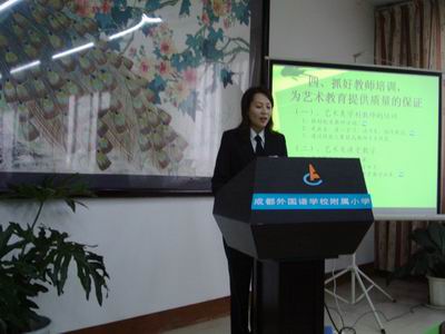 10月26日,我校接受了省市有关领导的考核和检查,争创《四川省百所艺术教育特色学校》。我校自建校以来,一直把艺术教育放在重要的位置,把它做为“一体两翼”中的重要一翼,从方方面面打造学校艺术教育的特色。