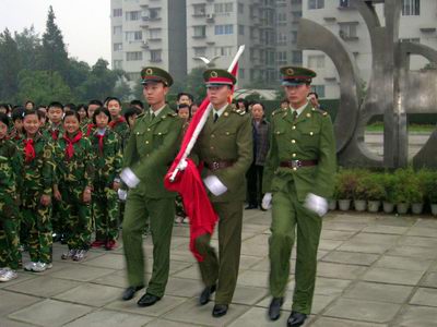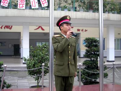 出旗奏乐,教官们英姿勃发真是让我们羡慕