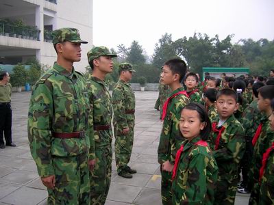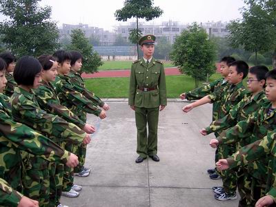 队的解放军叔叔给我们做正规的军事训练。在军训中我们将进行队列训练、军体拳