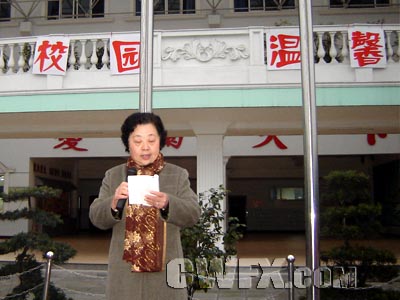 陶校长发表了热情洋溢的致词,高度评价了上学期学校取得的优异成绩,并对大家寄予了殷切的希望。她特别指出,新学期大家应该做到:静,静能生慧;洁,洁能生美;严,严能生优。只要大家同心协力,就一定能够将成外附小的各项工作推向一个新的高度。