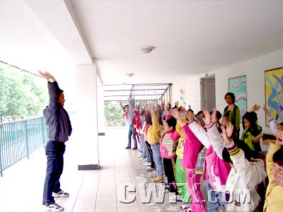 这是孩子们正在老师的带领下做准备活动。