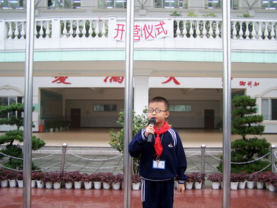 学生代表在开营仪式上表达了同学们克服困难的决心