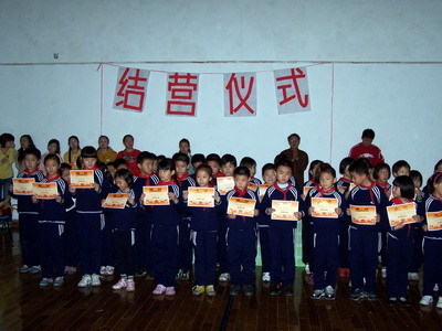 结营仪式于22日举行,由于下雨,同学们在教官的带领下来到室内体育馆进行汇报表演。