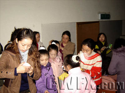来到现场的家长和老师,都积极帮助孩子做好准备工作。