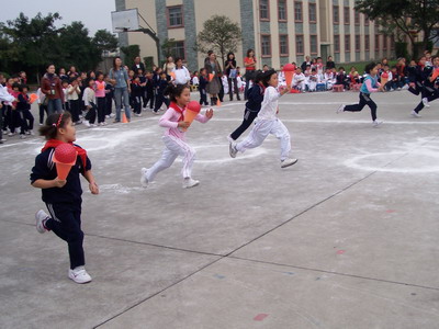本届体育节可谓是盛况空前,开幕式结束后,紧接着开始正式比赛,同学们在赛场上你追我赶,一片沸腾的海洋。请看图片报道: