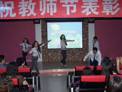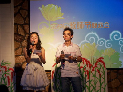 9月10日晚上,成外附小五楼教师活动中心张灯结彩,喜气洋洋,来自两个校区的二百多名教师欢聚一堂,共同庆祝第23个教师节的到来。这是两个校区的老师们在成外附小这个大家庭中首次携手联欢,也是教师活动中心装修一新之后首次向大家开放,因此具有重要的历史意义。