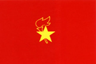 中国共产主义青年团团旗帜的旗面为红色,象征革命胜利;左上角缀黄色五角星,周围环绕黄色圆圈,象征中国青年一代紧密团结在中国共产党周围。