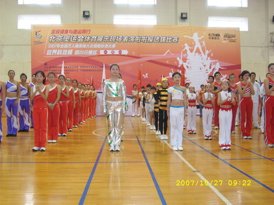 10月27、28日,在为期两天的2007'全国万人健美操大众锻炼标准大赛(四川赛区)的比赛中,我校健美操队以出色的表现获得了大众三级的一等奖、少儿一级一等奖和少儿三级二等奖,为学校争得了荣誉。(报道:何东生 详细信息请浏览:http://www.cwfx.cn/blog/user2/2526/archives/2007/10820.html)