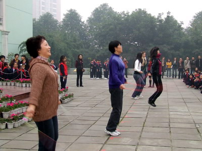 弥校长带头参加了跳绳比赛,全体同学可是现场评委哦