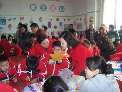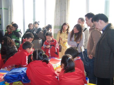家长参观孩子们的优秀作品展