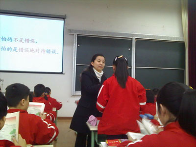 继11月28日我校语文低段教研活动之后,29日上午,我校语文中高年级再次进行了年段教研活动。这次活动分别由四年级和五年级的四位老师进行现场上课和说课。图为四年级汤波老师正在执教《乌丢丢的奇遇记》阅读汇报课《走在爱的路上》。