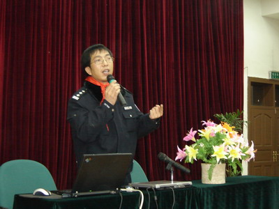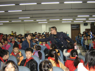 12月5日晚上,我校三年级举行了主题为“珍爱生命 安全出行”的年级队会,成都市公安局交警大队第六分局五大队的江成大队长带着队员为孩子们做了生动精彩的安全讲座。