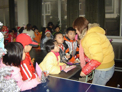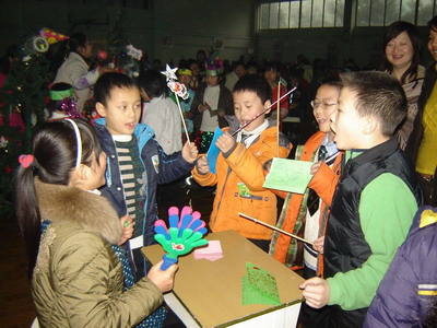 三年级的活动也体现了高参与和重情趣,以孩子喜闻乐见的方式让他们在活动中学习英语,运用英语。这是孩子们一边拍皮球,一边认读英语单词,一心可要二用哦!