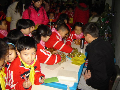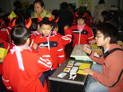 与其它年级一样,一年级的小朋友也在老师的带领下参与了各种有趣的游园活动,在活动中学英语,用英语。之后,孩子们凭着自己的积分兑换学校为孩子们准备的节日礼品,还能到城市的超市里用英语体验购物的乐趣。(关于一年级英语节的详细报道请点击:http://www.cwfx.cn/blog/user2/3354/archives/2007/11769.html )