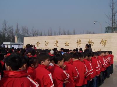 2008年1月8日,我校三年级345名师生进行了一次特别的社会实践活动——参观“金沙博物馆”,“金沙博物馆”是成都市爱国主义教育基地,通过本次活动,让孩子们了解历史、学习历史,热爱古巴蜀文化,从而进一步热爱我们的文化、我们的祖国。