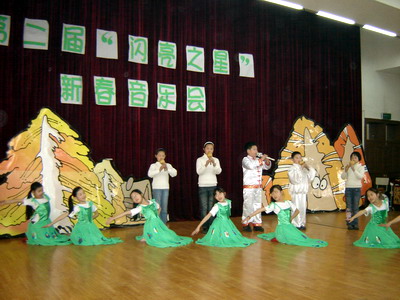 2008年1月9日下午,我校在五楼阶梯教室举行了第二届“闪亮之星”新年音乐会,学习管民乐的孩子们表演了自己精彩的节目,展示了管民乐学习的成果,同时也是我校艺术教育水平的一次集中体现。