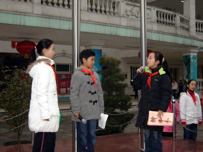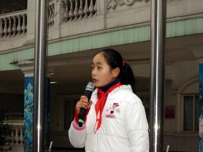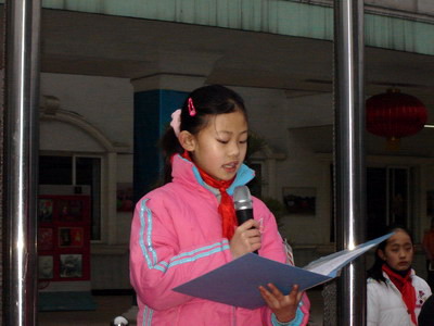 大队长张书琪同学宣读倡议书