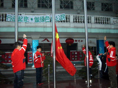伴随着雄壮的国歌,鲜艳的国旗冉冉升起