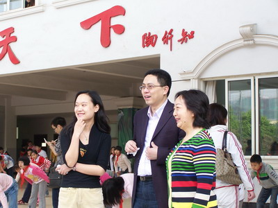 4月25日,全国外语教学专委会副秘书长汪晓阳先生到我校进行访问,图为汪先生在常务校长弥晓蓉女士和校长助理钟灵滋主任的陪同下参观校园。