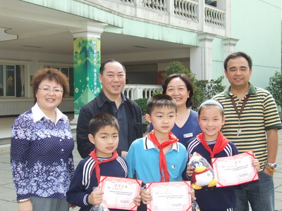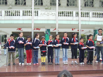 岷江音乐台的台长、总监和主持人都来到了学校,为在这次活动中获奖的同学颁奖。这次活动中获得一等奖的同学,还将代表学校参加全家免费的环保三江游。