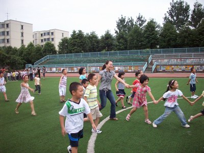绿色的操场,成了孩子们玩耍的乐园