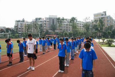 操场上在进行体育活动的同学和老师也停了下来为死难同胞默哀。