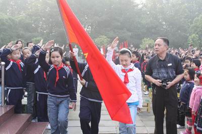 又是秋风送爽,一片生机的大好时光;又是金色的丰收,充满希望的温暖日子。今天,我们聚集在火红的队旗下,庆祝中国少年先锋队走过58年的光辉历程,同时欢迎200位新队员加入少先队的行列。我们都是学校的小主人,希望每位少先队员都以主人翁的态度爱护学校的一草一木。瞧,我们胸前飘荡的红色领巾,曾经让我们深深地骄傲和自豪,它曾时刻提醒我们在校要做好学生,在家要做好孩子,在社会要做好公民。