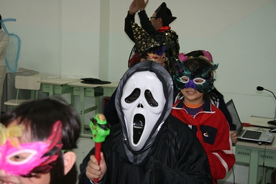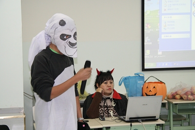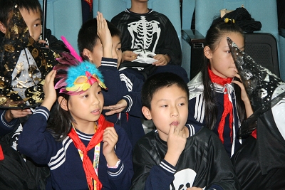今天是中海校区庆祝万圣节的第二天。晚上7点半,孩子们化好妆来到多功能厅。