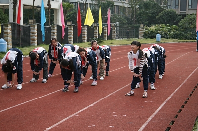 在开幕式之后,比赛马上就开始了,快看同学们已经站在跑道上做准备活动了呢