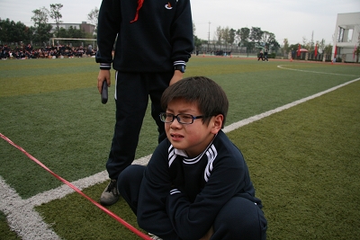 这位同学因为在预赛中只得到了第三名而伤心的落下了泪水