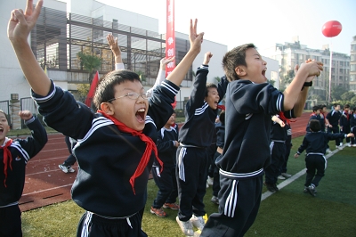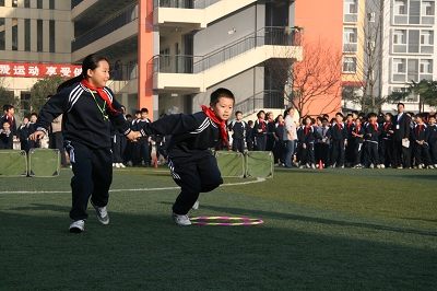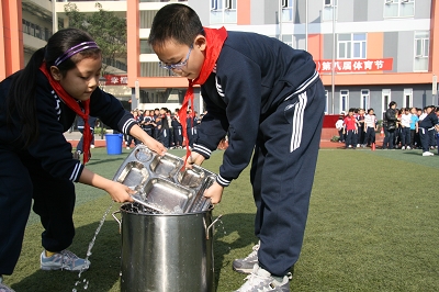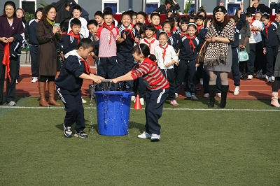 所有比赛项目结束以后,学校评出了团体比赛的名次,并为这些班级颁奖。
