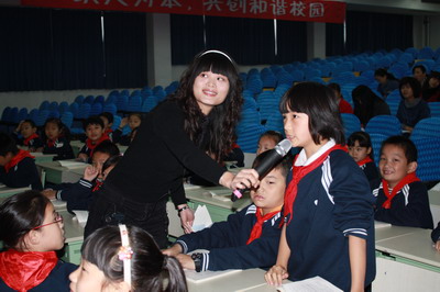 第十一周,我校语文组青年教师赛课活动继续举行。在以常态研究为主线的赛课活动中,青年教师们努力学习,积极探索,涌现出了许多既实又活的好课,同时也极大地促进了自身的专业成长。(图为刘晓菊老师执教《非常小男生和非常小女生》阅读汇报课。)