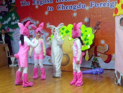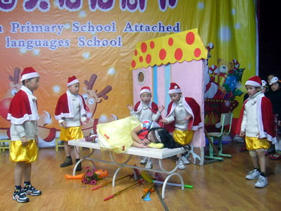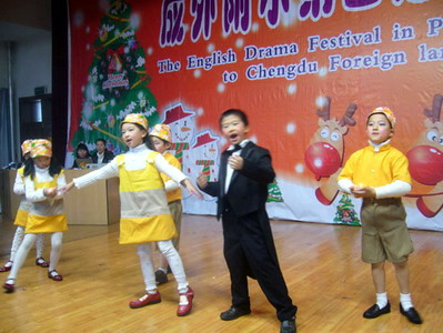 12月17日下午,二年级全体师生欢聚一堂,举行了成外附小第二届英语话剧节二年级组英语话剧比赛。经过英语老师的精心编排和辛勤辅导,孩子们服装道具精美,感情充沛,表演到位,每一个班的节目都表演得非常精彩!整个演出环环相扣,井然有序。演员和观众互动呼应,气氛热烈。在精彩的演出中,在欢乐的气氛中,全年级的全体师生和部分家长度过了欢乐的英语话剧节!(报道:李文)