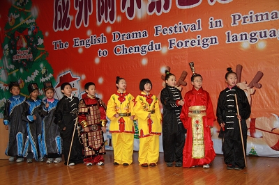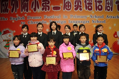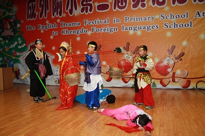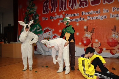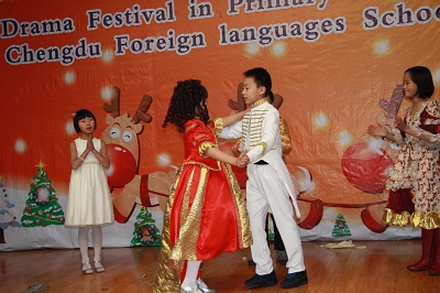 今晚19点00分,成外附小第二届英语话剧节颁奖暨圣诞庆祝晚会在五楼阶梯教室隆重举行。成都外国语学校主管英语教学的副校长路跃、四川省小教培训中心的张琦老师、金牛区英语教研员李琦老师及学校行政领导也到会参加了庆祝。
