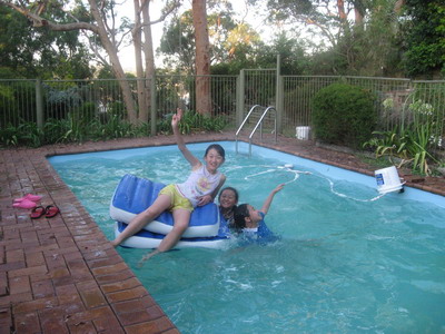 【照片说明:我们住的家里,有一个很大的游泳池,给我们带来了很多欢乐。】