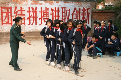 “左!右!左!右!”同学们一边喊着,一边稳稳的向前走