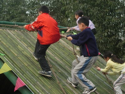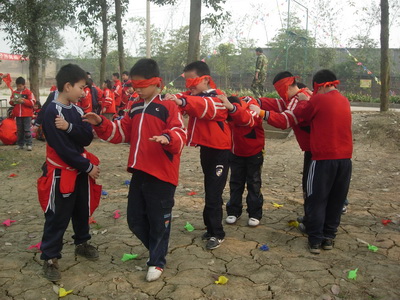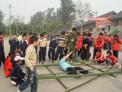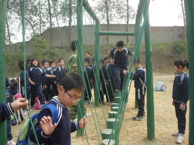 3月19日,阳光明媚,花红柳绿,成外附小三四年级的孩子们来到位于新津的飞翔基地,既感受美好的春光,也在教练的组织下开展了丰富多彩的户外活动。活动的设计非常精巧,孩子们都非常喜欢。图为孩子们在教练的组织下开展“同心协力”的游戏。