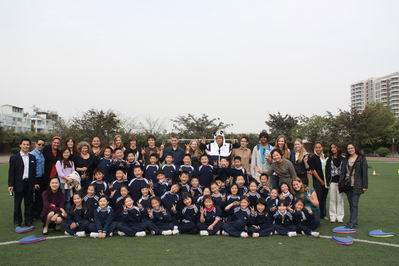 3月23日,美国Phoenix Country Day School到我校进行了短暂的参观访问。由4位教师和12名学生组成的参观团在部分领导的带领下参观了我校。其间,参观团观摩了一年的英语课、音乐课、形体课和三年级的体育课。