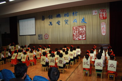 4月9日,我校“与经典同行 与圣贤为友”国学经典诵读活动暨金牛区学校国学润育活动现场会在五楼阶梯教室隆重举行,我校两个校区的全体师生同步收看了网络直播。成都市教育局、金牛区教育局的有关领导,各兄弟学校的校长来到现场和五年级的孩子一道观看了演出。四川电视台、金牛区有线电视台进行了相关的参访报道。