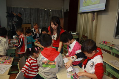 四月十六日上午,美国The Oakwood School 师生一行十六人来到我校,与我校学生进行了愉快的交流互动。在英语课堂上,他们为活泼的学习方式和孩子们出色的表现而鼓掌;美术课堂上,他们与孩子一起合作剪出了可爱的狮子王;体育课上,他们认真学习中国功夫的样子真是和小朋友一样可爱。