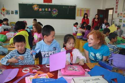 看到孩子们的精彩手工,美国客人都非常兴奋