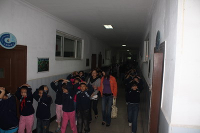 吴校长:希望大家经过今天的演练,在以后地震发生时能够用自己所学的知识来保护自己。