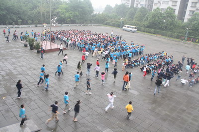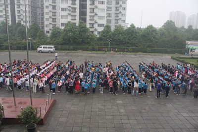2008年5月12日,汶川大地震让我们刻骨铭心。为了提高师生们在紧急情况下避险自救和应变能力,学校举行了防震减灾演练。在观看了简短的防震减灾宣传片后,随着一声代表震感微弱的长笛声响起,同学们立刻放下手中的东西,快速躲到课桌下;当代表震感强烈的两声长笛响起,同学们迅速冲出教室,有序地按照预先制定的路线撤离教学楼到指定的安全地点集合。