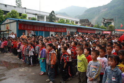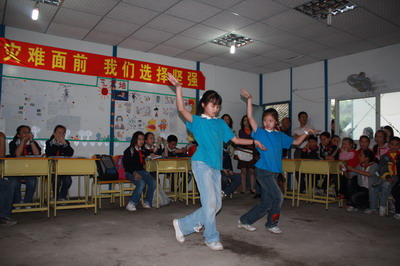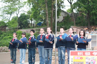 5月9日下午,我校参加“爱·回首——5·12地震周年彭州行”主题活动的师生,在岷江音乐台的组织下前往新兴镇九年义务教育学校,与当地师生开展交流活动。孩子们在紧凑的活动中,真切感受到了灾区师生的乐观与坚强,体会到了祖国大家庭的和谐与美好。