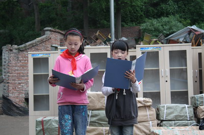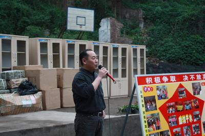 岷江音乐的负责人致辞并向灾区师生捐赠书柜。