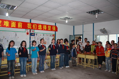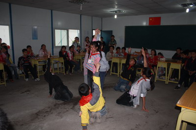 随后,我校师生与该校六年级一班的孩子们一起开展了班会活动。