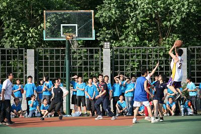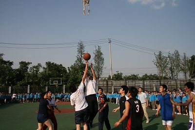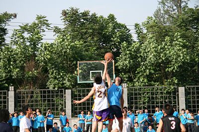 5月19日下午5点中海校区的进行了一次激烈的篮球比赛,两队队员是分别来自五年级和六年级的各学科老师。