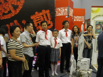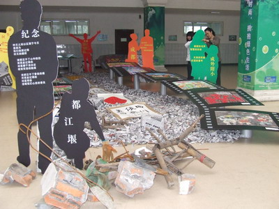 省市领导观看我校美术作品:《重建》(装置艺术)