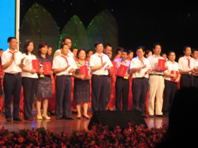 在颁奖现场,弥校长代表学校登台领奖