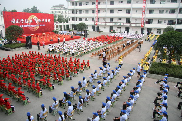 (我校学生在台上诵读,图为子云学校全体师生集体呼应)